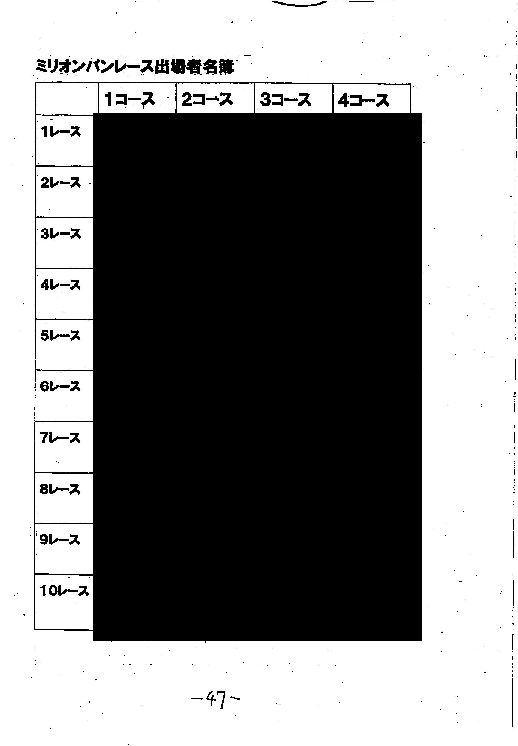 ミリオンパンレース出場者名簿|47ページ